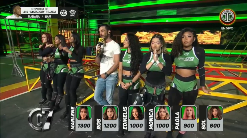 Seis competidoras se mantenían en este segundo round de la etapa verde, pero este jueves se redujo el grupo a cinco. Así es, tras enfrentarse a pruebas del día la tabla de puntaciones quedó de la siguiente manera: