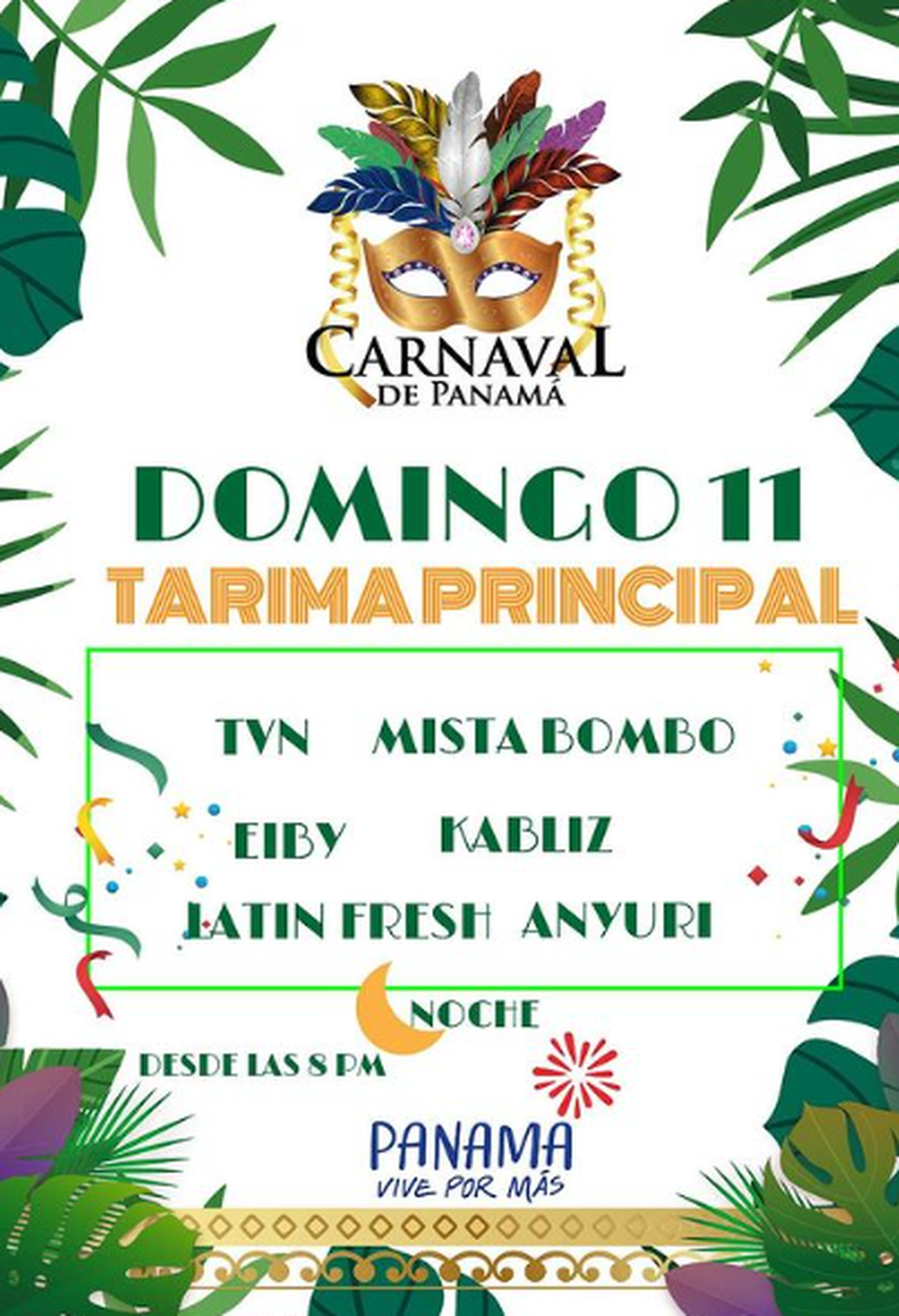 Artistas que se presentarán en la Tarima Principal el Domingo de Carnaval - 11 de febrero