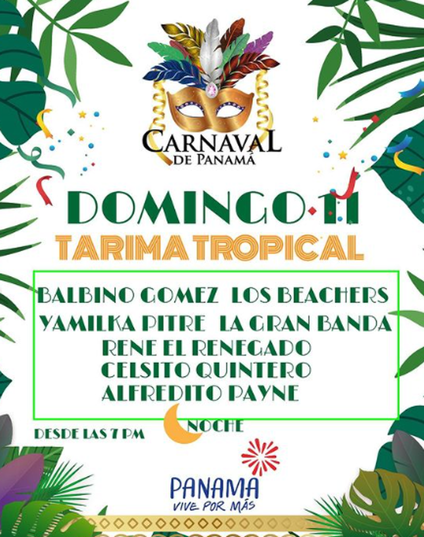 Artistas que se presentarán en la Tarima Tropical el Domingo de Carnaval - 11 de febrero