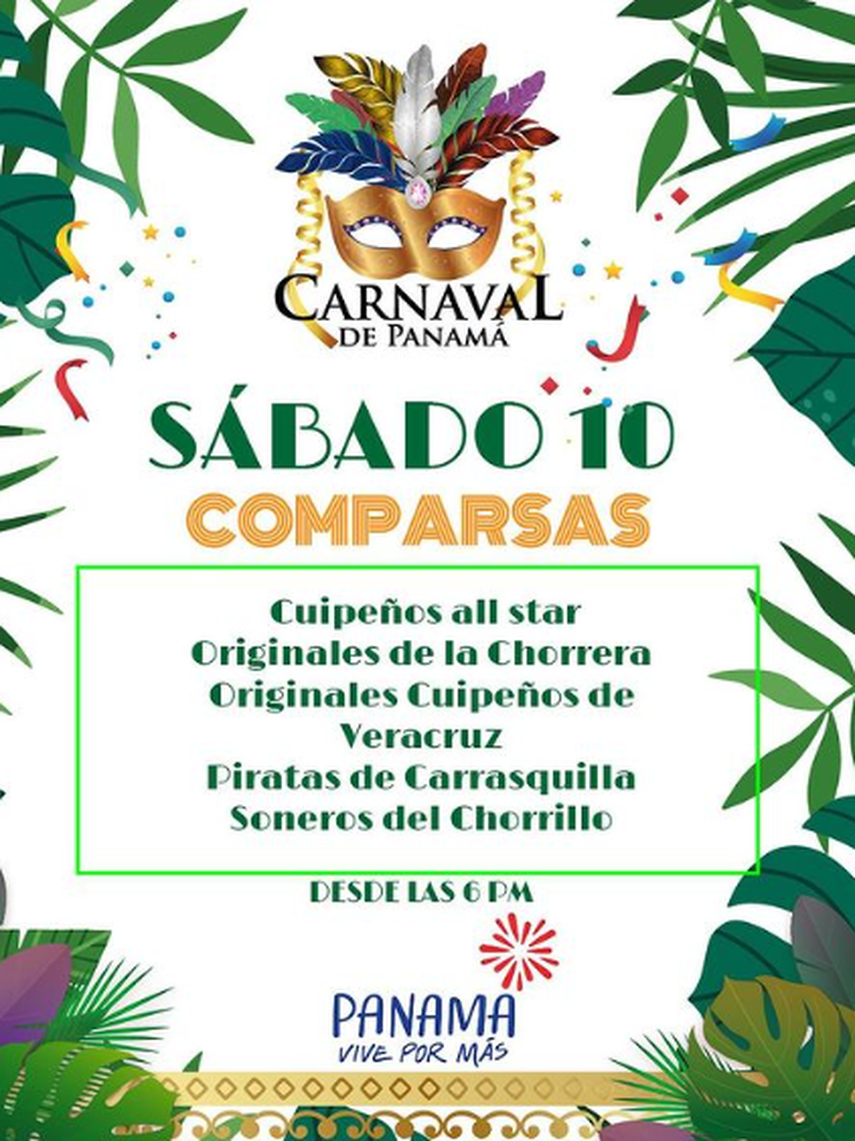 Para la noche del Sábado de Carnaval se presentarán las siguientes comparsas, a partir de las 6:00 p.m.
