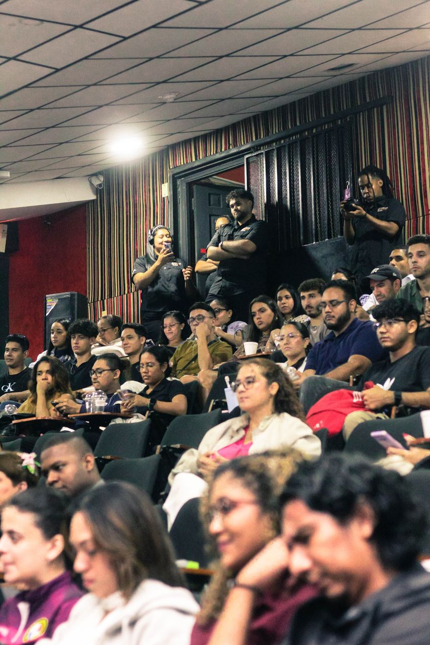 La conducción del evento estuvo a cargo de Lili Vargas, quien estuvo acompañada del invitado especial K4G, artista que compartió con los presentes sus experiencias profesionales y anécdotas como aporte formativo para los futuros comunicadores. Asimismo, el público participó en dinámicas interactivas con premios otorgados por los patrocinadores, además de disfrutar de palomitas y bebidas que complementaron la experiencia.