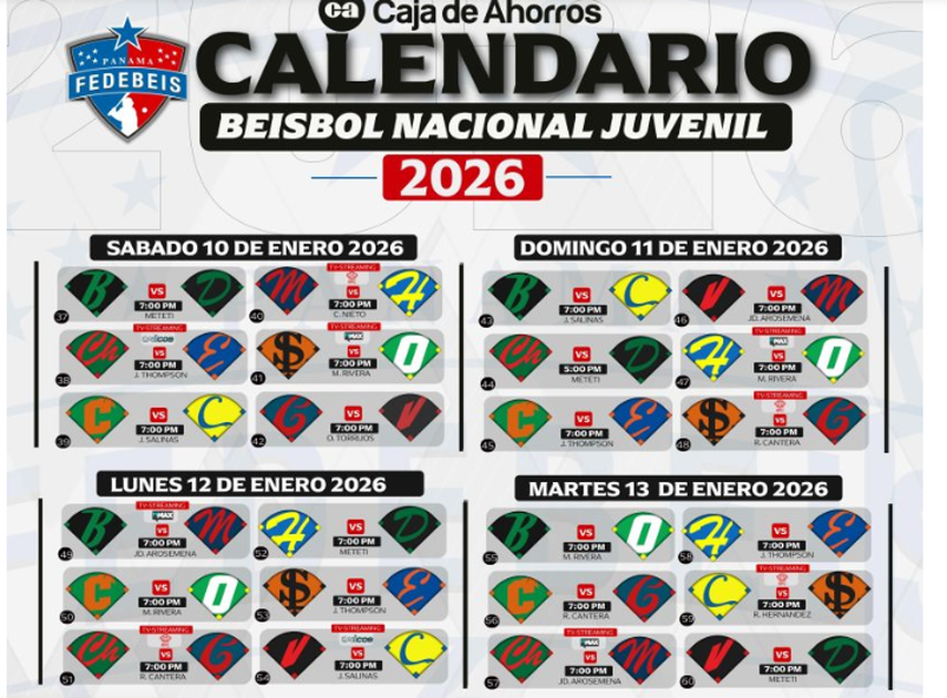 La temporada 57 del Campeonato Nacional de Béisbol Juvenil, Copa Caja de Ahorros 2026, continúa generando expectativas y emociones tras disputarse la jornada del sábado 10 de enero, según el reporte oficial de la Federación Panameña de Béisbol (Fedebeis).