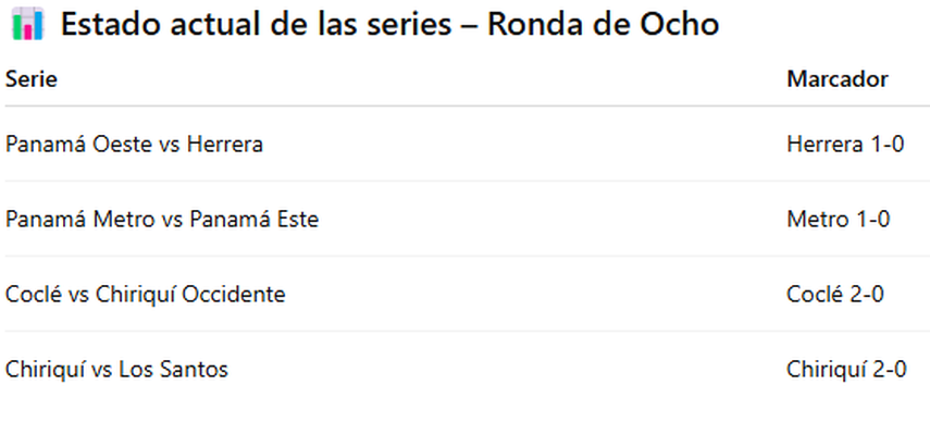 Con estos encuentros, las series ya entran en una etapa clave, donde cada triunfo pesa en la lucha por avanzar a las semifinales del torneo.