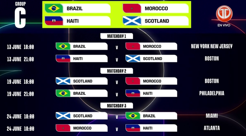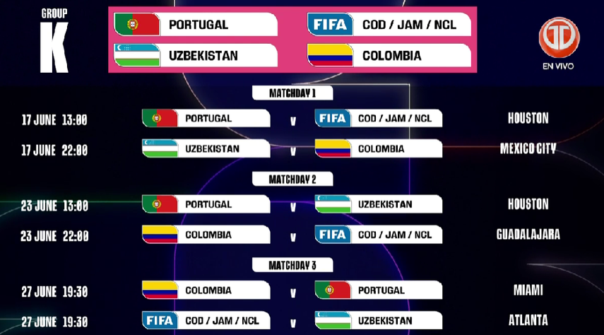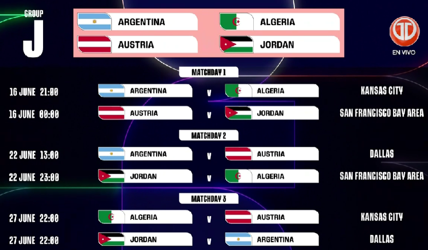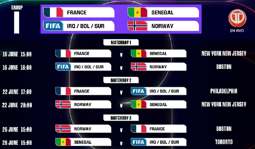 El viernes 5 de diciembre se realizó el sorteo de la fase de grupos del Mundial 2026, que tendrá lugar en el Centro John F. Kennedy, en Washington, Estados Unidos. Este sábado 6 de diciembre se dio a conocer las sedes de los partidos.
