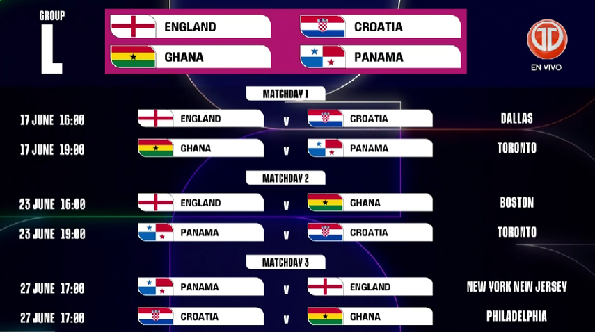 Así quedó el grupo L, en sedes oficiales para los partidos del Mundial 2026