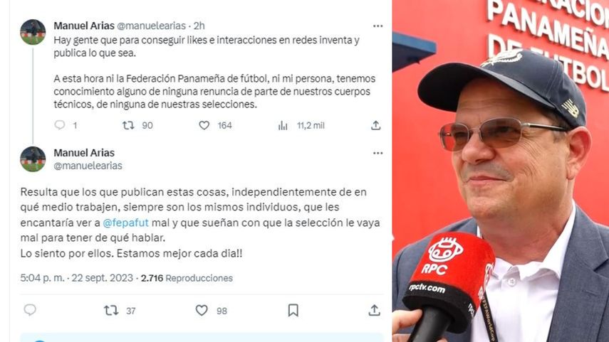 "A esta hora ni la Federación Panameña de fútbol, ni mi persona, tenemos conocimiento alguno de ninguna renuncia de parte de nuestros cuerpos técnicos, de ninguna de nuestras selecciones", publicó Arias en X.