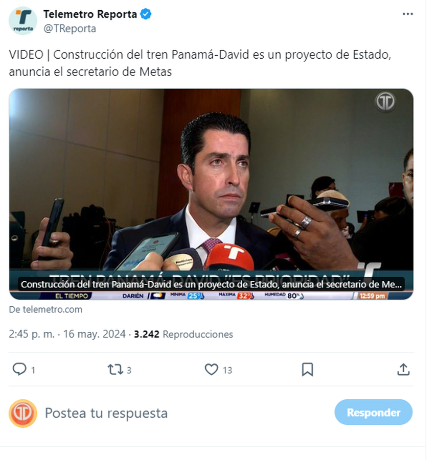 El ministerio designado para Asuntos del Canal de Panamá, bajo la dirección del presidente electo José Raúl Mulino y Secretario de Realizando Metas, José Ramón Icaza, ha manifestado que la construcción del tren Panamá-David es un proyecto de Estado prioritario. Mulino e Icaza han enfatizado que este proyecto es tan crucial como el Hospital del Niño y la creación de salas de oncología en el interior del país.