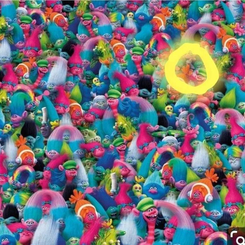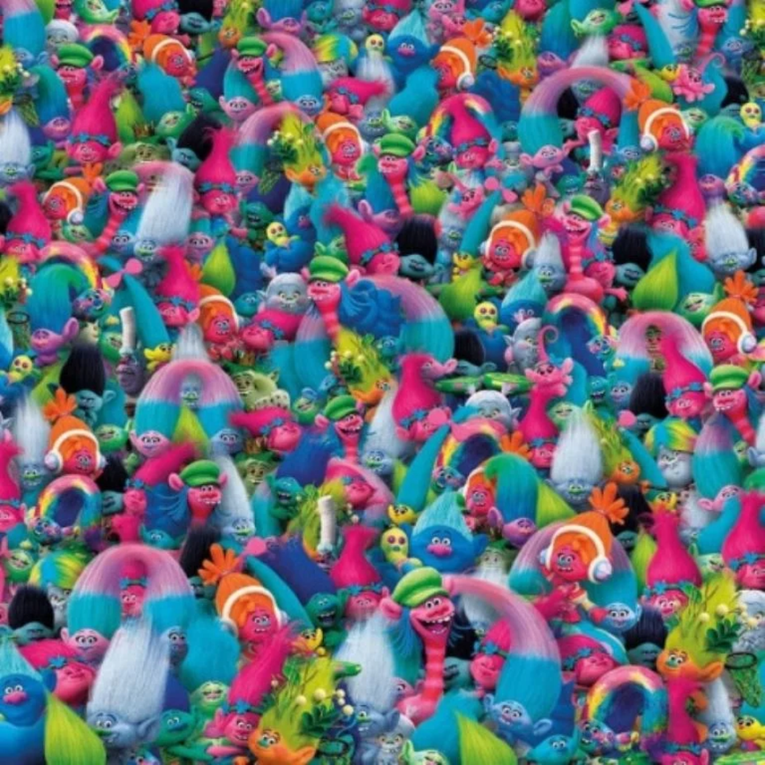 Este acertijo visual, tiene una imagen llena de color y personajes de la película Trolls, hay un desafío para ti: encontrar a Nemo en solo 7 segundos. Nemo, el famoso pez de Buscando a Nemo, es de color naranja con rayas blancas y negras.