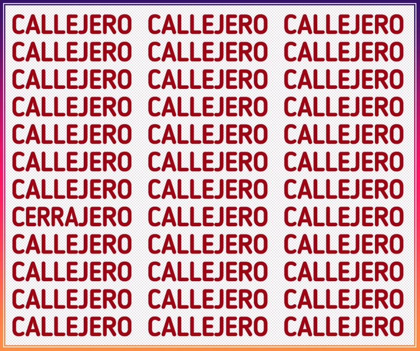 Observa detenidamente la imagen proporcionada en este acertijo visual, donde se encuentra una serie de la palabra 'CALLEJERO'. A simple vista, todo parece estar en orden. No obstante, al observar con detenimiento, descubrirás una palabra distinta en este reto visual. Este desafío te brinda el tiempo necesario; depende de ti aprovecharlo de manera óptima. ¡A jugar!
