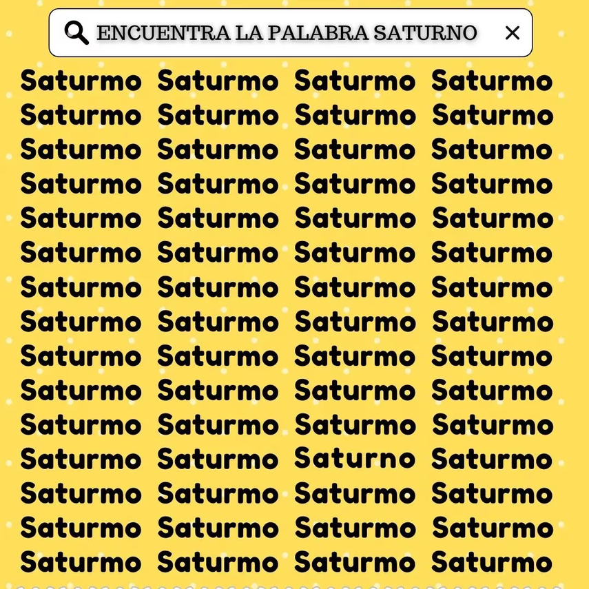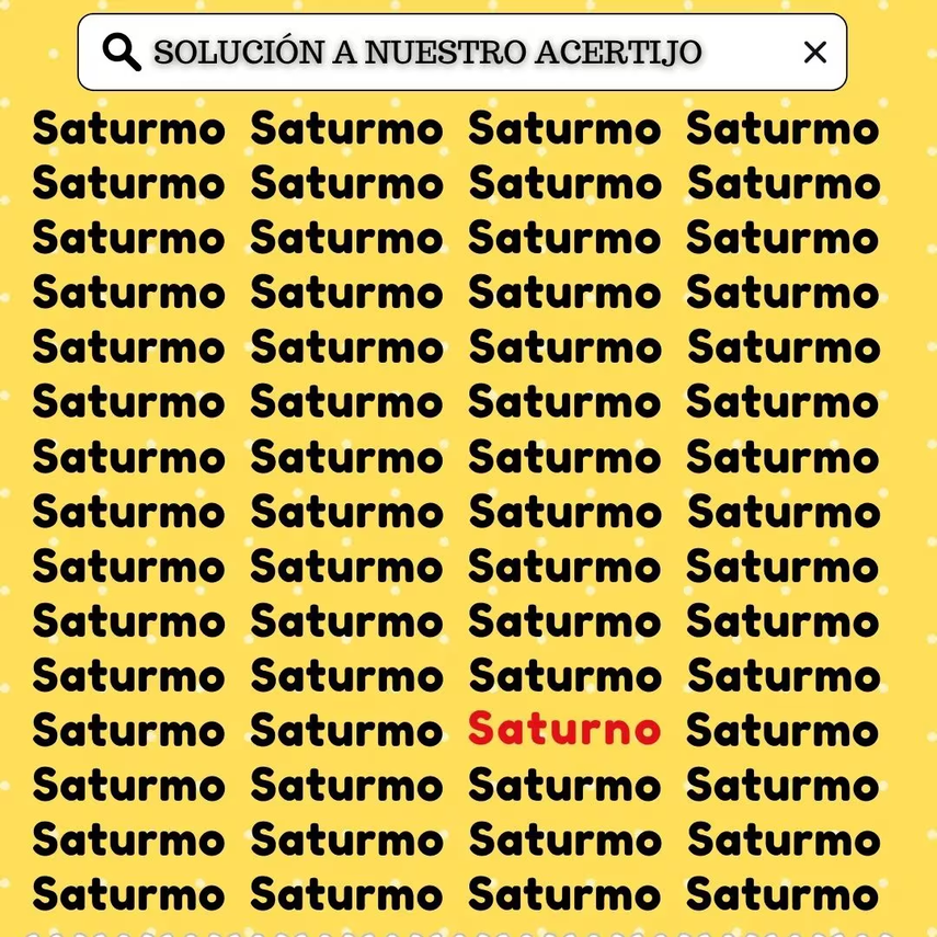 ¿Estás listo? En este reto visual, deberás encontrar la palabra "Saturno" en 7 segundos. A menudo, contienen elementos o detalles en la imagen que ocultan pistas o información crucial para resolver el enigma. Los acertijos visuales suelen desafiar la capacidad de observación, lógica y resolución de problemas de una persona.