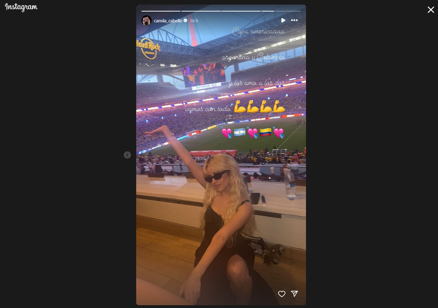 La cantante fue otra de las famosas celebridades que dijeron presente en la final de Colombia y Argentina en la Copa América 2024.