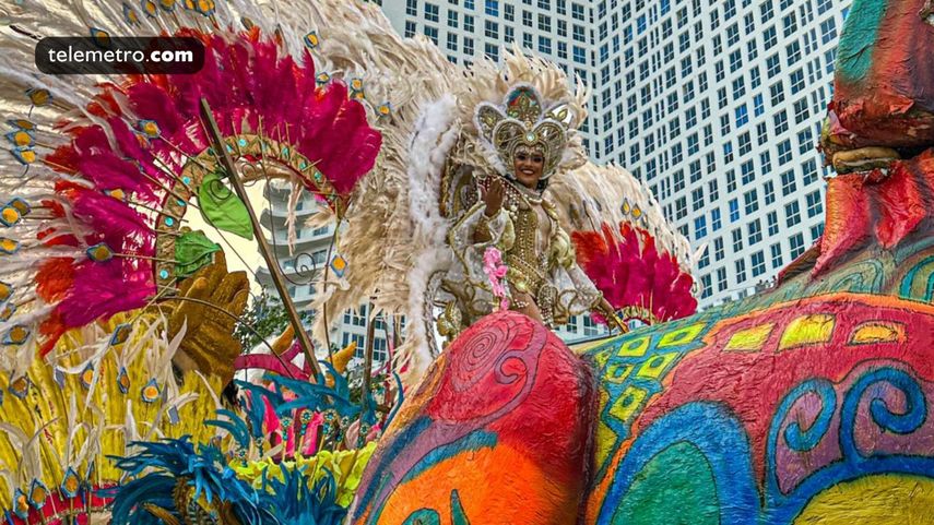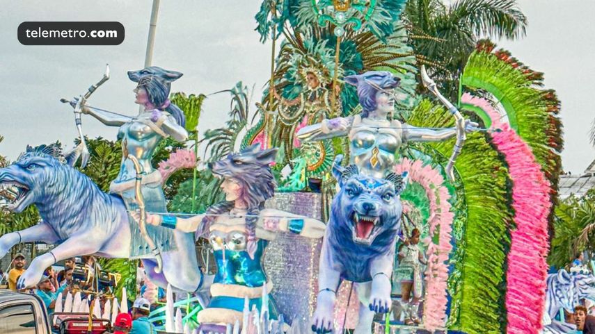 Seguidamente, Anubis Osorio, reina del Carnaval de Panamá 2023, junto a sus princesas también formó parte del Desfile de Reinas 2023 con una alegoría inspirada en el reina africano de Dhomey.