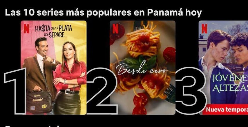 En Netflix, se encuentran entre las más vistas: 'Hasta que la plata nos separe', nueva adaptación de la telenovela homónima escrita por Fernando Gaitán, en el 2006. Además, de la serie 'Desde cero' y 'Jóvenes altezas', se encuentran el top 10 de series más vistas. Por su parte, entre las películas, están: 'Asesino Solitario', 'Sin novedad en el frente' y 'El ángel de la muerte', historia basada en la vida real.