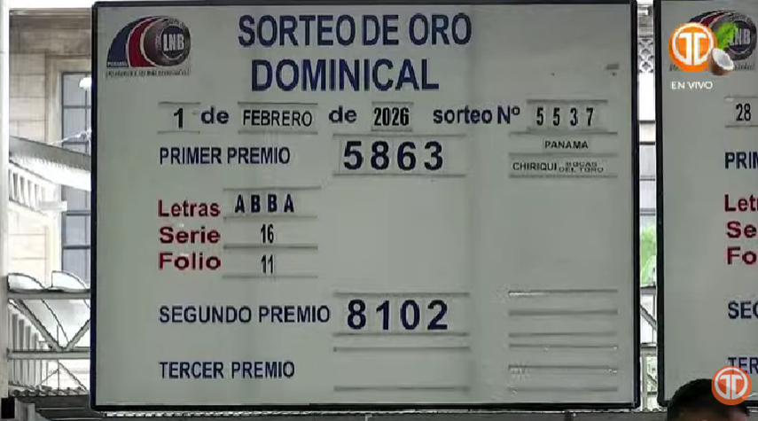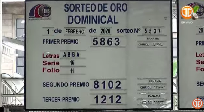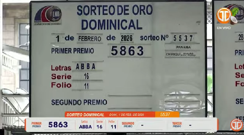 Sigue el minuto a minuto de la Lotería Nacional de Panamá. Conoce los resultados del sorteo dominical correspondiente al 1 de febrero de 2026.