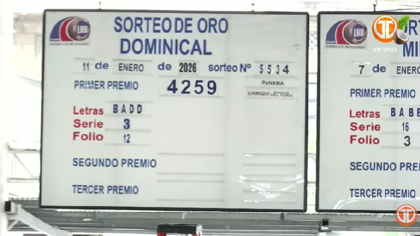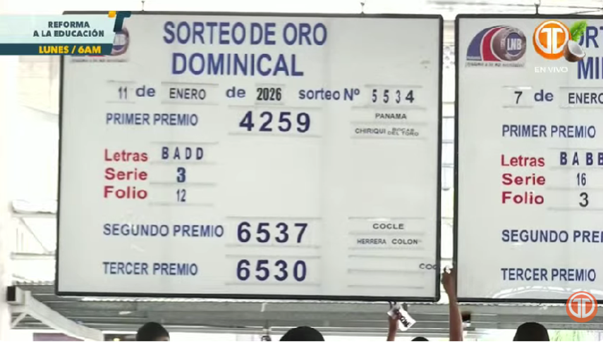 Sigue el minuto a minuto de la Lotería Nacional de Panamá. Conoce los resultados del sorteo dominical correspondiente al 11 de enero de 2026.