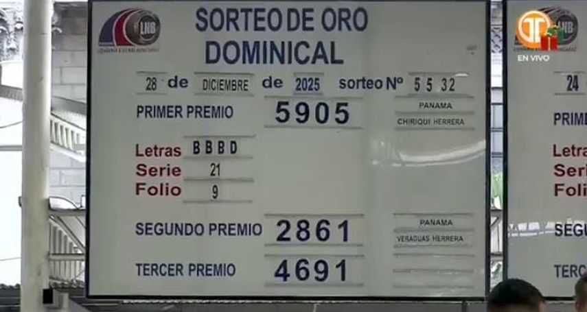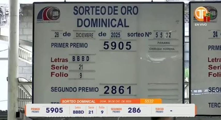 Sigue el minuto a minuto de la Lotería Nacional de Panamá. Conoce los resultados del sorteo dominical correspondiente al 28 de diciembre de 2025.