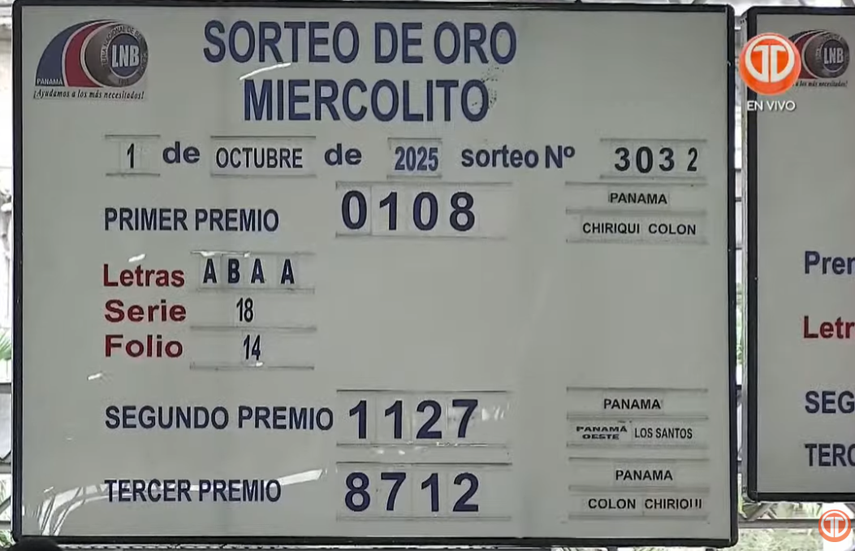 Sigue el minuto a minuto de la Lotería Nacional de Panamá. Conoce los resultados del sorteo miercolito correspondiente al 01 de octubre de 2025.