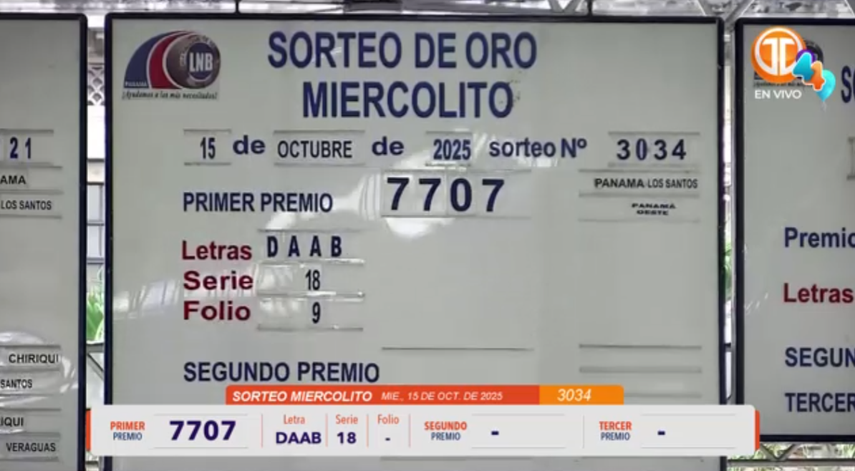 Sigue el minuto a minuto de la Lotería Nacional de Panamá. Conoce los resultados del sorteo miercolito correspondiente al 15 de octubre de 2025.
