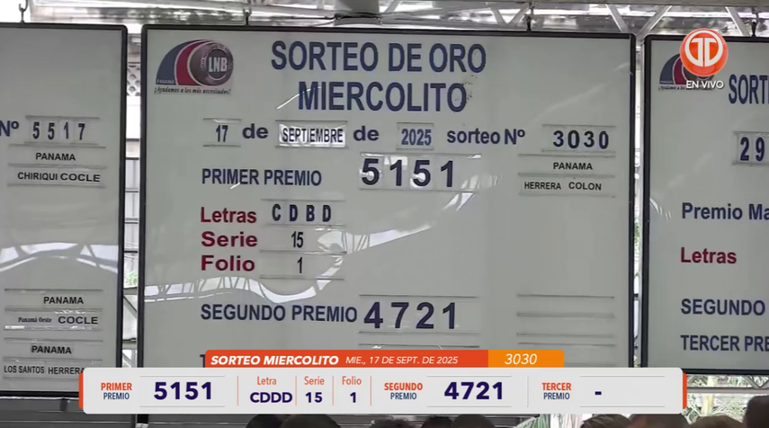 Sigue el minuto a minuto de la Lotería Nacional de Panamá. Conoce los resultados del sorteo miercolito correspondiente al 17 de septiembre de 2025.