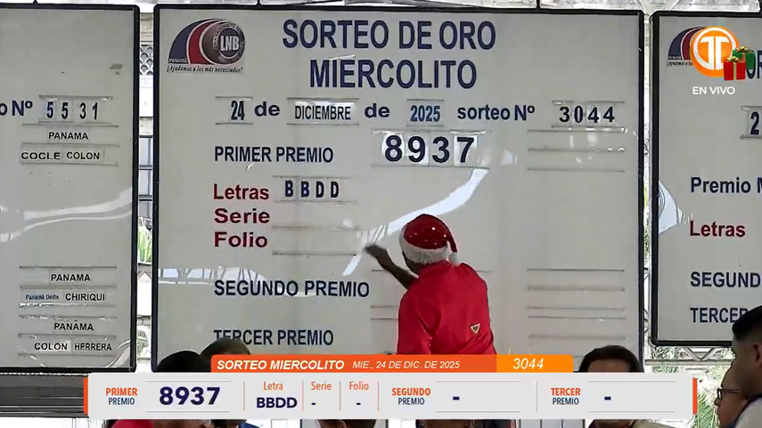 El sorteo miercolito del 24 de diciembre de 2025, de la Lotería Nacional de Panamá, se transmite a través de diferentes plataformas digitales en vivo como: Telemetro.com y MedcomGo