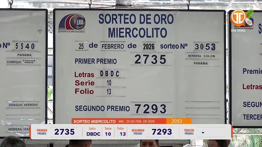 Sigue el minuto a minuto de la Lotería Nacional de Panamá. Conoce los resultados del sorteo miercolito correspondiente al 25 de febrero del 2026.