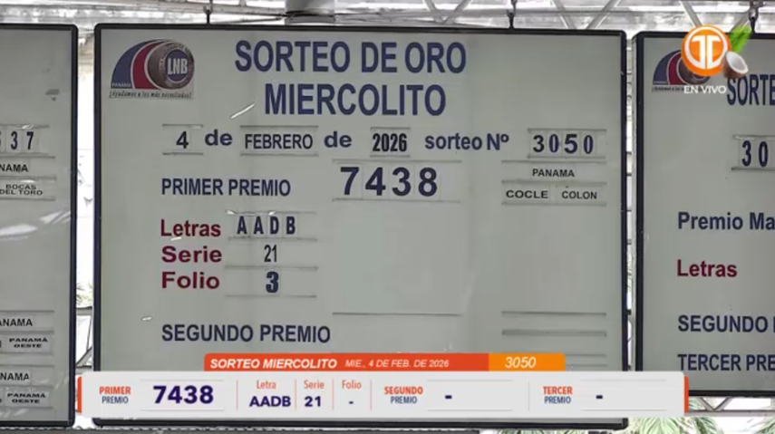 Sigue el minuto a minuto de la Lotería Nacional de Panamá. Conoce los resultados del sorteo miercolito correspondiente al 4 de febrero del 2026.