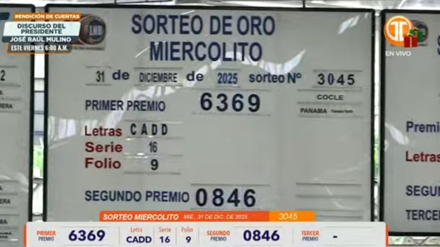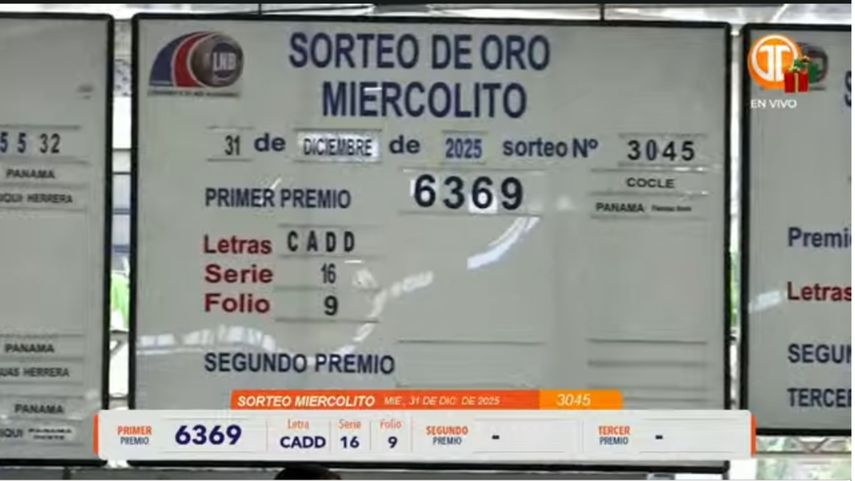 Sigue el minuto a minuto de la Lotería Nacional de Panamá. Conoce los resultados del sorteo miercolito correspondiente al 31 de diciembre de 2025.