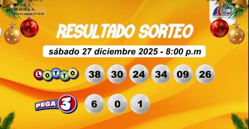 ¿La pegaste? Conoce cuáles fueron los resultados del sorteo de la Lotería Nacional de Panamá, con los nuevos juegos electrónicos de la Lotto y Pega 3, correspondiente al sábado 27 de diciembre de 2025.