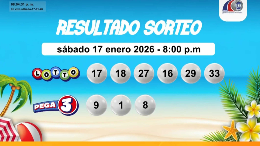 ¿La pegaste? Conoce cuáles fueron los resultados del sorteo de la Lotería Nacional de Panamá, con los nuevos juegos electrónicos de la Lotto y Pega 3, correspondiente al sábado 17 de enero de 2026.