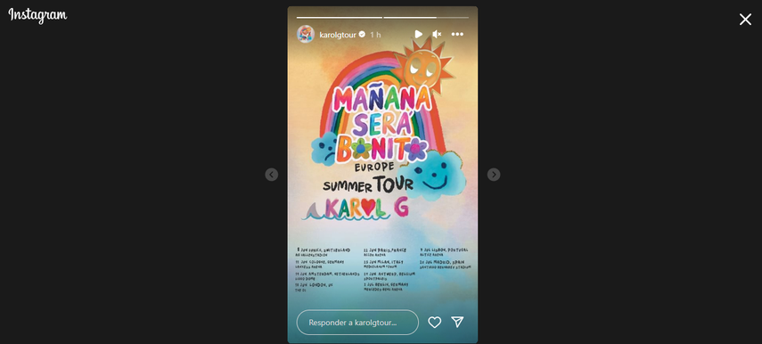 "EUROPA!!!!!!! En el 2019 fue la última vez que nos vimos pero CERRAMOS EL MAÑANA SERÁ BONITO TOUR CONTIGO EN EL VERANOOOooo SUIZA, ALEMANIA, FRANCIA, HOLANDA, INGLATERRA, ITALIA, BÉLGICA, PORTUGAL, ESPAÑA, POR FIN LOS VEOOOOOOO!!!!!!!!!!!! #MSBTour", escribió la artista en su cuenta de Instagram.