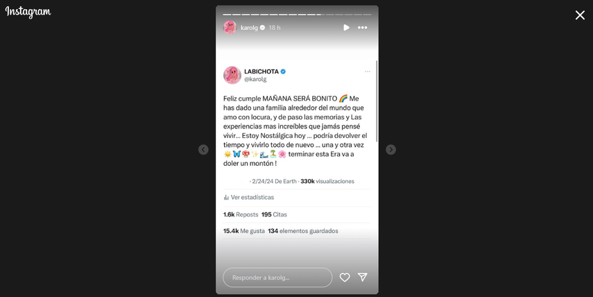 "Feliz Cumple Mañana será Bonito" decía la primera imagen que compartió Karol G.