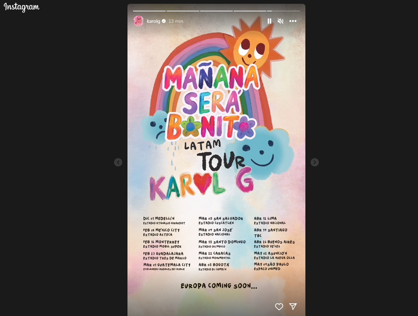 Karol G no ha incluído a Panamá en la lista de su Tour por Mañana Será Bonito, solo México, San Salvador, San José, República Dominicana, Venezuela, Colombia, Perú, Argentina y Brazil han sido los convocados.