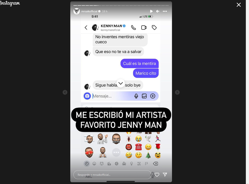 Esto por supuesto molestó a Mr. Saik, quien publicó en sus redes sociales una conversación en donde Kenny, le decía que no inventara mentiras.