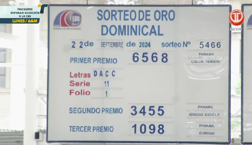 Sigue el minuto a minuto de la Lotería Nacional de Panamá. Conoce los resultados del sorteo dominical del 22 de septiembre de 2024.