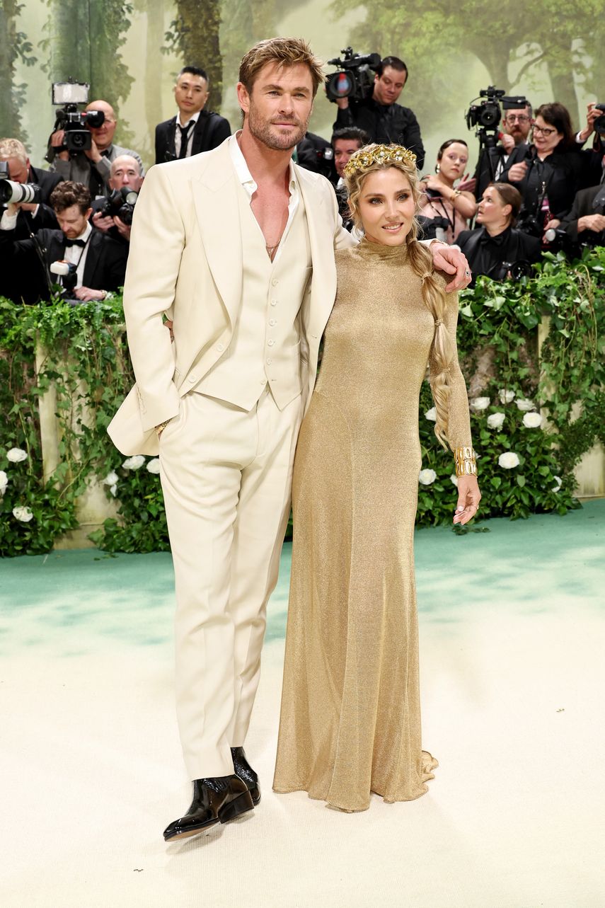 El segundo anfitrión en llegar a la alfombra roja de la Met Gala 2024, fue el actor Chris Hemsworth, junto a su esposa, Elsa Pataky, quienes derrocharon su amor frente a lo paparazzi.