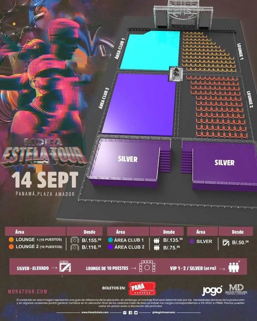 El cantante, compositor y productor musical puertorriqueño Gabriel Armando Mora Quintero mejor conocido artísticamente como 'Mora' llegará a Panamá con su gira denominada 'Mora Estela Tour 2023'. Mora es uno de los artistas del género urbano con grandes éxitos en su trayectoria profesional dentro de la industria musical. Para este show los boletos a la venta están disponibles a partir del viernes 30 de junio desde las 2:00 p.m. Este concierto esta programado para el 14 de septiembre de 2023.