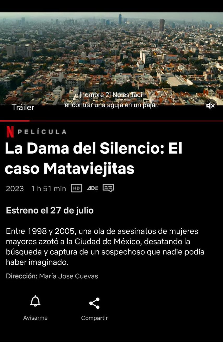 'La Dama del Silencio: El Caso Mataviejitas' es el nuevo documental de Netflix que estrenará el jueves 27 de julio, donde detalla las investigaciones por parte de las autoridades del asesinato adultas mayores en el Distrito Federal, Ciudad de México.