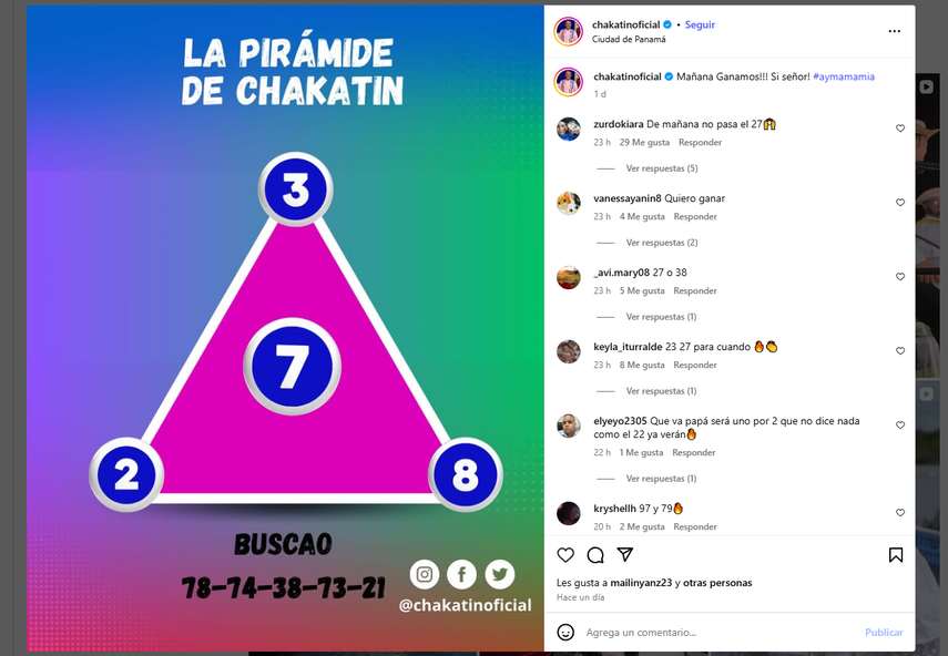 A Chakatín, para este sorteo menciona algunos números más buscados: 78-74-38-73-21.