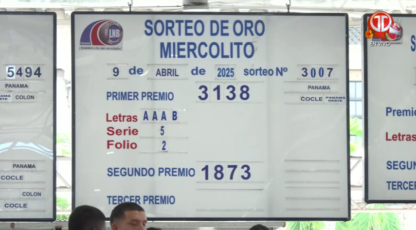 Contenido relacionado: VIDEO| Sorteo miercolito de la Lotería Nacional de Panamá del 9 de abril de 2025