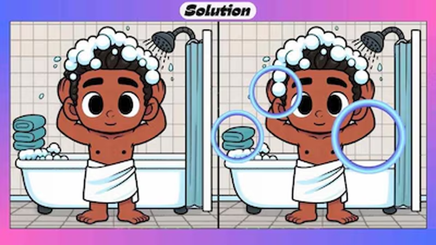 En este reto visual, te mostraremos una imagen de un hombre bañándose, lleno de espuma. El baño está decorado con azulejos blanco hueso. Sin embargo, hay tres diferencias entre una imagen y otra que debes encontrar en 5 segundos en este desafío.