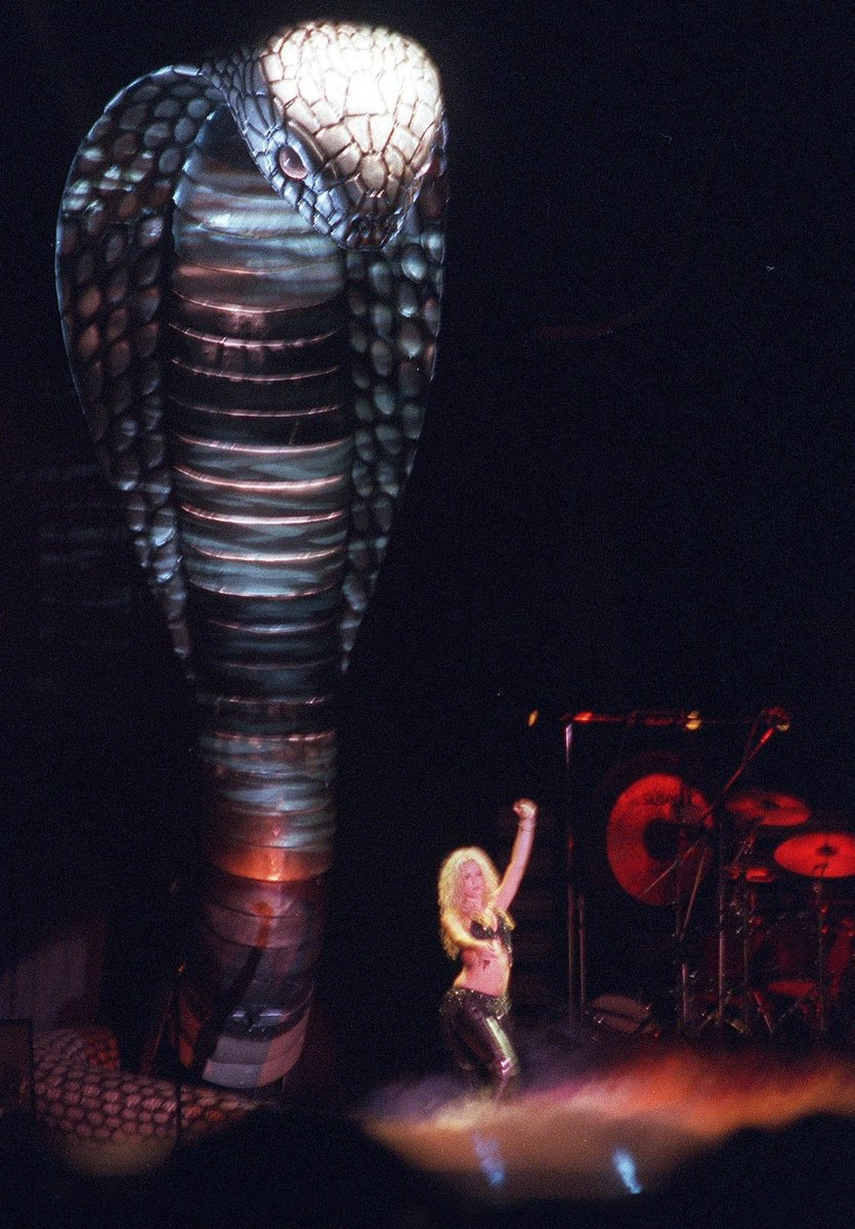 Se trata del Tour de la Mangosta que se realizó fuera del mundo hispanoparlante y la barranquillera que en ese entonces estaba comenzando su carrera se le ocurrió poner una cobra en el escenario con más de 30 pies de largo.