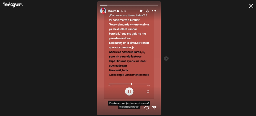 Shakira le envía contundente mensaje a Bad Bunny