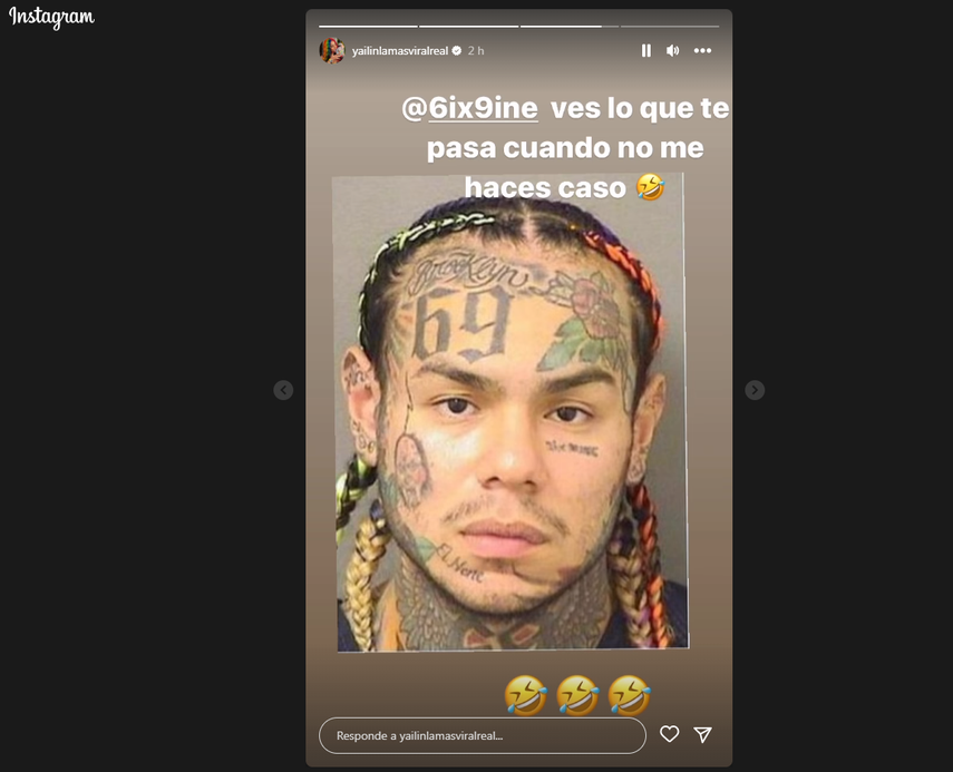 La colaboradora de Tekashi 6ix9ine queda regañandolo en redes sociales con el siguiente mensaje: Ves lo que te pasa cuando no me haces caso.