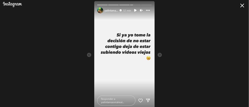 "Si ya yo tomé la decisión de no estar contigo deja de estar subiendo videos viejos", escribió Yailin agregando un emoji de una cara de sueño.