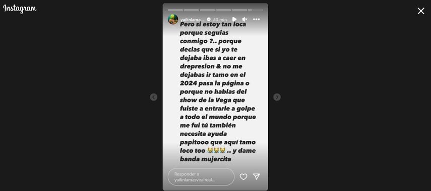 "Pero si yo estoy tan loca porque seguías conmigo? por qué decías que si yo te dejaba ibas a caer en depresión y no me dejabas ir", decía parte del mensaje de Yailin para su ex novio.