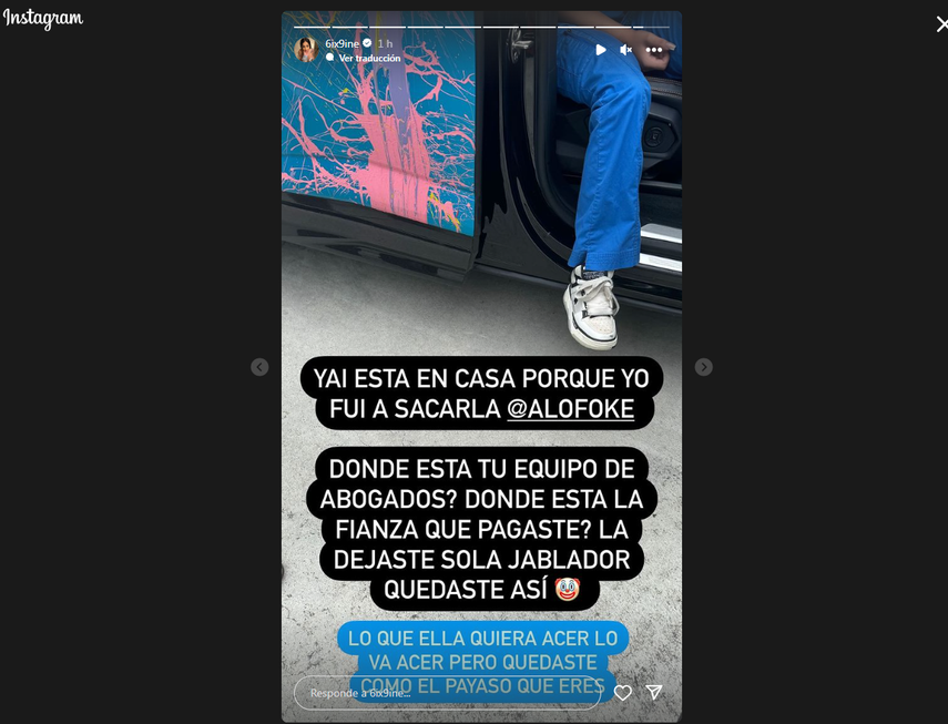 El único que ha hablado por Yailin es Tekashi quien tomó una foto de la chivirika sentada en su auto y afirmó que ella puede hacer lo que ella quiera, que no la va a retener.