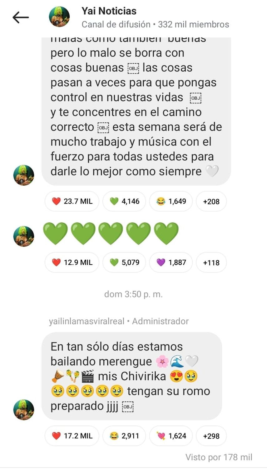 "En tan solo días estamos bailando merengue... Mis Chivirikas tengan su romo preparado jjjj", escribió Yailin en su mensaje.