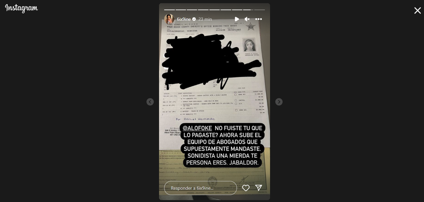 "Yailin, un juez le impuso una fianza, pagamos 1,000 dólares el equipo legal que tenemos en Miami asistiéndola, ya será liberada en varias hors y luego será trasladada a República Dominicana", dijo Alofoke en un video comunicando la situación de Yailin.