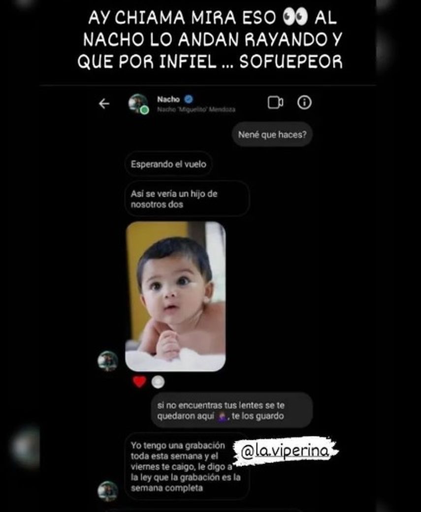 Así que luego de esto, se han activado los rumores de ruptura, sobre todo porque en redes circula un chat que revelaría la supuesta infidelidad de Nacho a su novia.