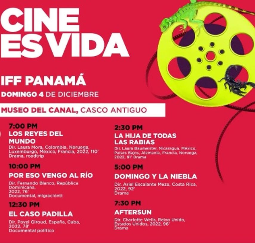El Festival Internacional de Cine de Panamá continúa este fin de semana y aquí te mostramos los detalles de lo que el público podrá disfrutar este domingo 4 de diciembre.